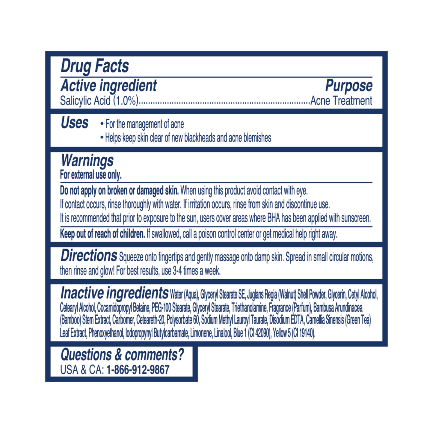 From the #1 Scrub Brand in America & Canada.* Crafted for all you acne warriors out there, this deep-cleaning facial cleanser is your ultimate partner-in-crime. Packed with a soothing blend of green tea and 1% salicylic acid (aka your pores' BFF), a pore perfecting Beta Hydroxy Acid. It is also loaded with essential ceramides to keep your skin moisturized. Powered by Mother Nature, our key ingredients are 100% natural, forming the secret formula behind the face scrubs you adore . This power-duo blend of skin-smoothing walnut shell and bamboo powder helps to deeply exfoliate and remove impurities for a clean, glowing complexion. And guess what? It's a breeze to use! Just squeeze a dime-sized amount onto your fingertips, massage onto damp skin, and spread in small circular motions to awaken your skin's natural glow. Rinse and shine! For optimal results, use 3-4 times a week and pair with your favorite St. Ives skin care products. *Full-sized scrubs only, no testers or travel sizes.