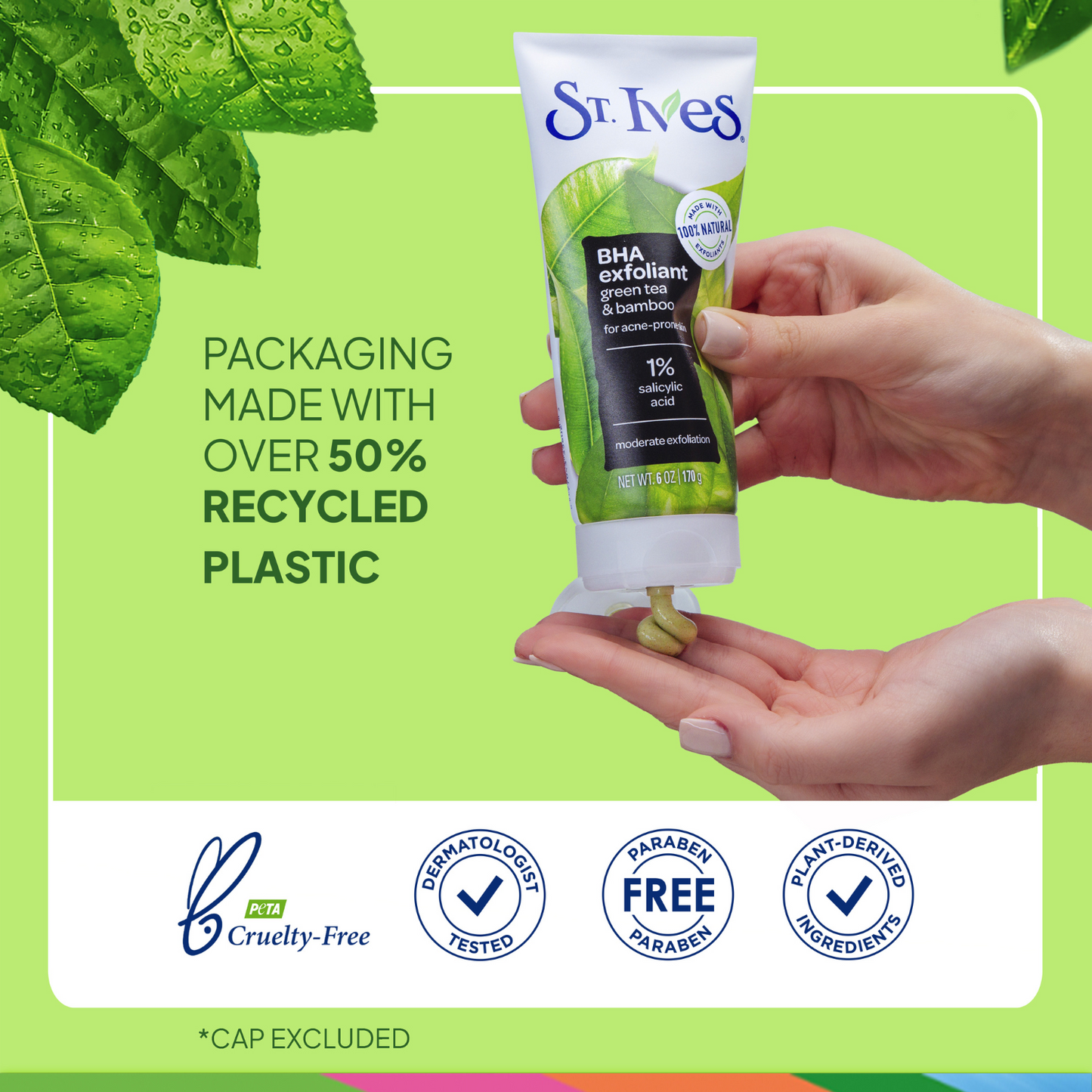 - Show those blackheads the door with St. Ives BHA Green Tea & Bamboo Face Exfoliant for acne prone skin and kick those pesky blemishes to the curb.