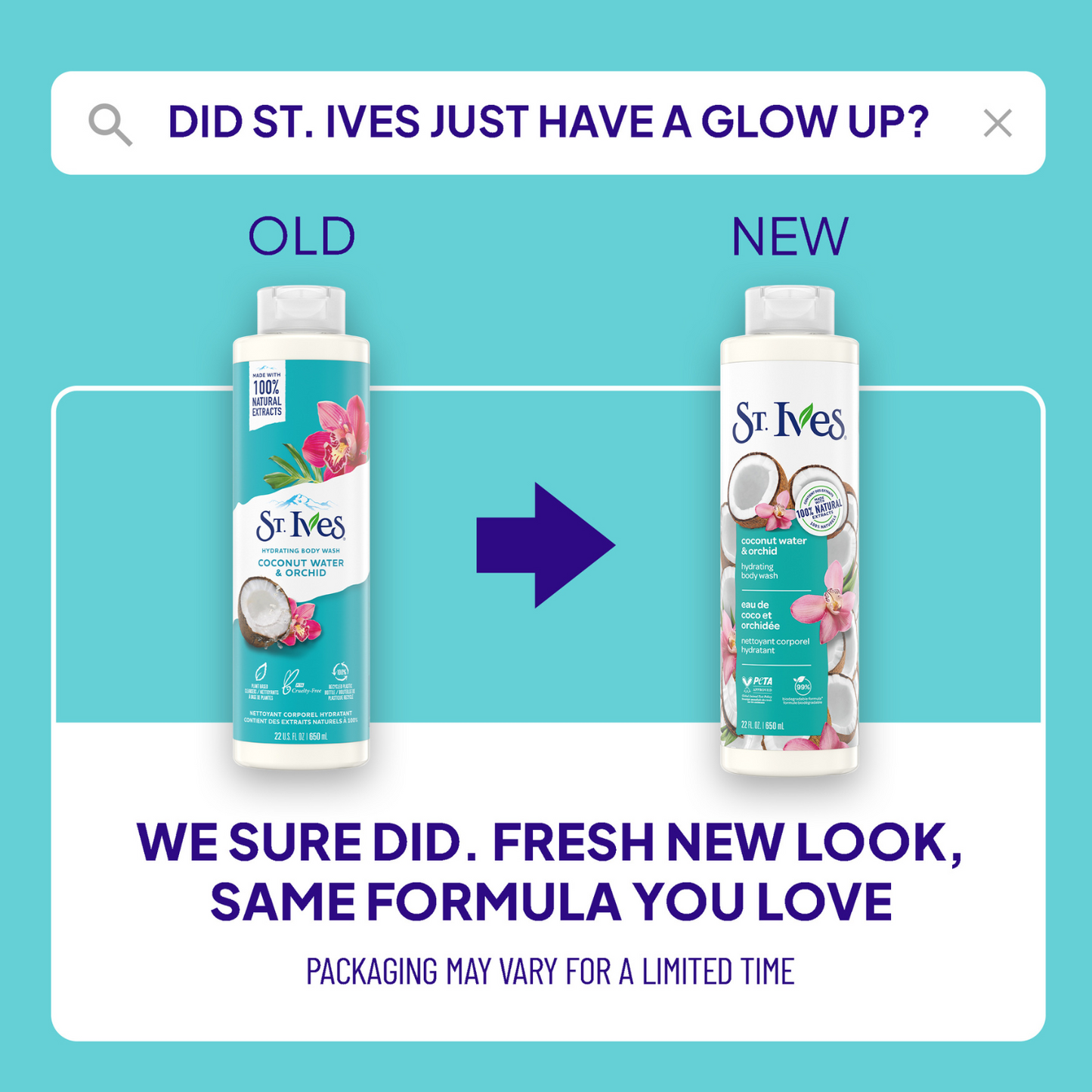 - Treat your skin to a tropical getaway (no plane ticket required) with St. Ives Hydrating Coconut Water & Orchid body wash.